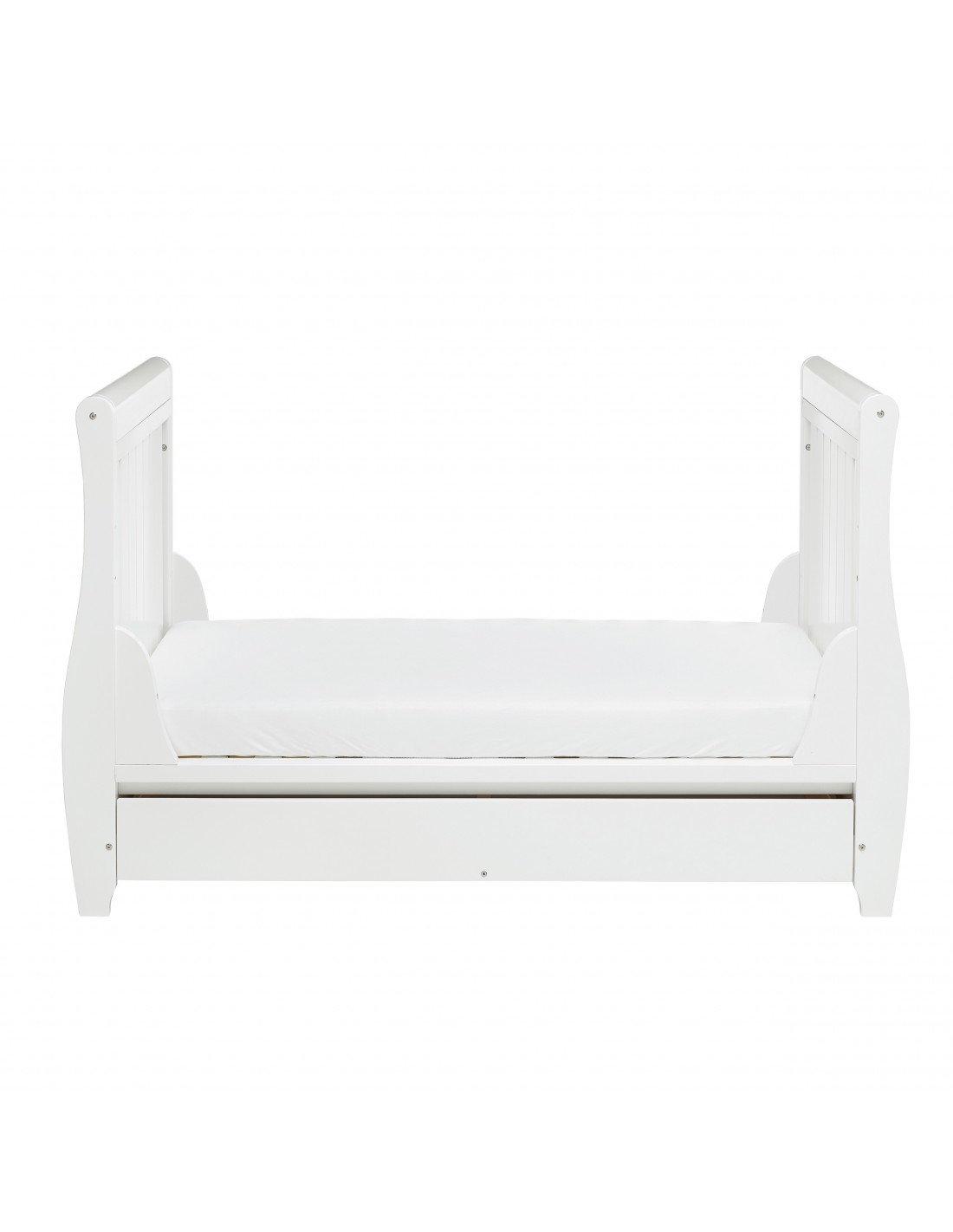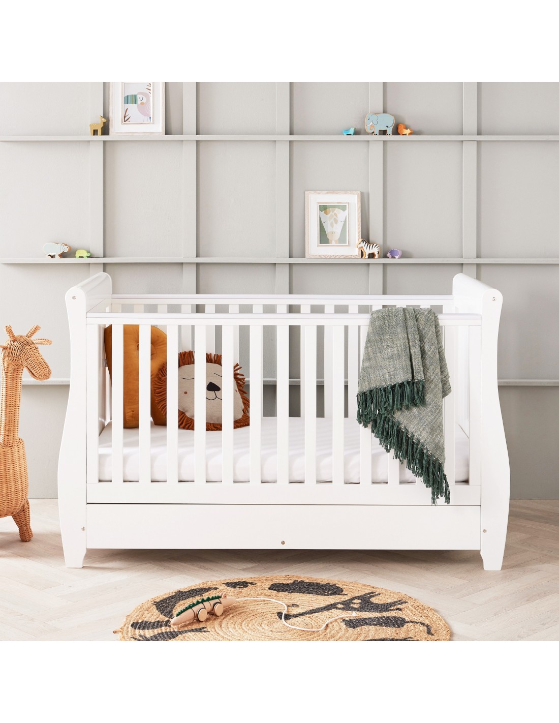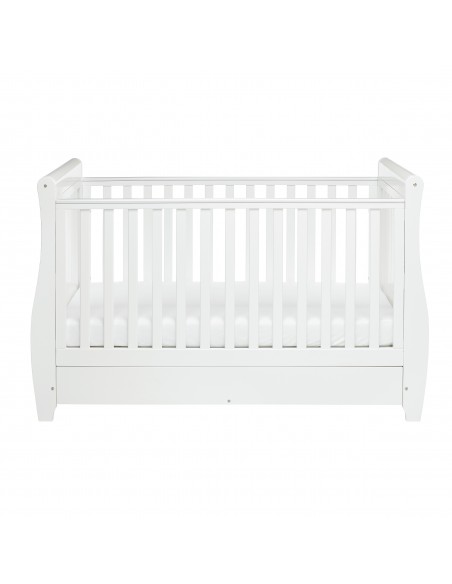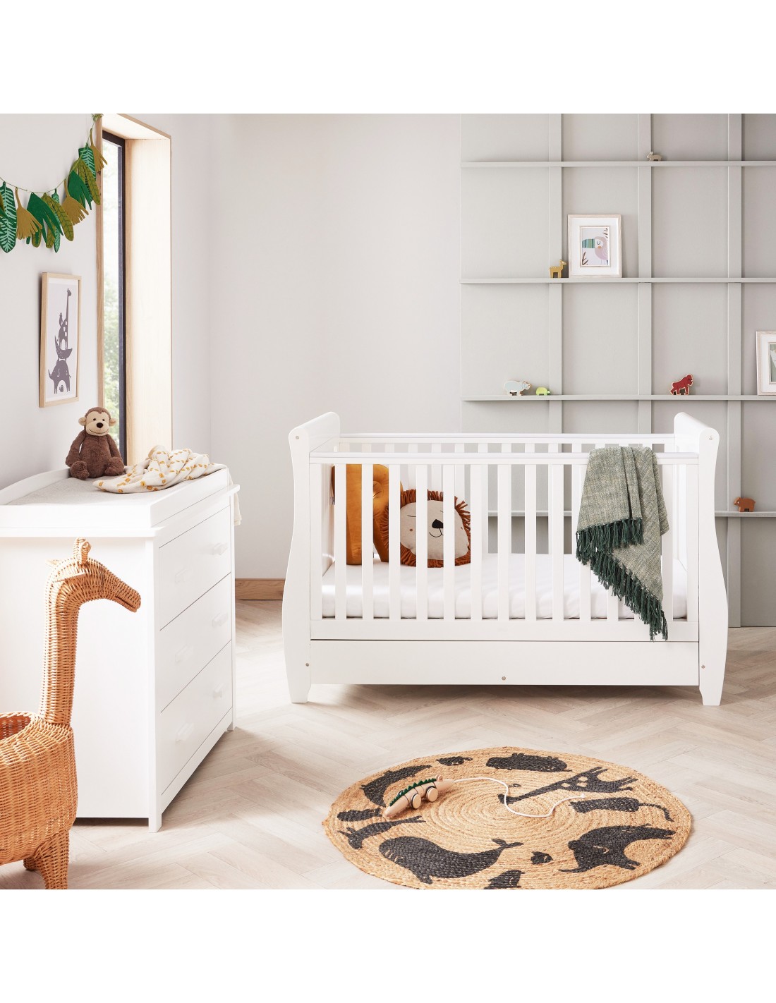 The sleigh cot bed is a timeless and elegant piece of furniture that will grow with your child. Made from sturdy wood and finished in a classic hue, it features a sleigh design with curved edges and slatted sides. The cot bed has a 3-position adjustable base, allowing you to lower it as your baby grows. The cot bed also comes with teething rails to protect your baby’s gums and teeth, and a handy storage drawer underneath to keep all your baby essentials close at hand. It can be converted into a toddler bed when your child is ready to make the transition from a cot.