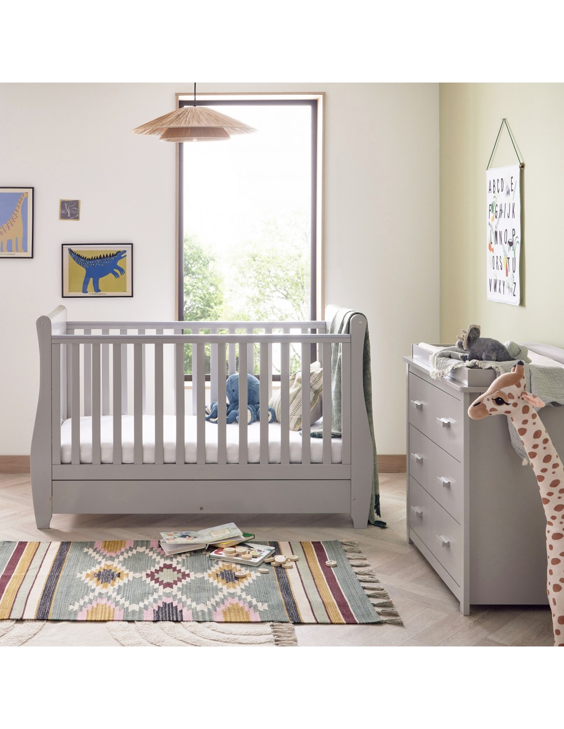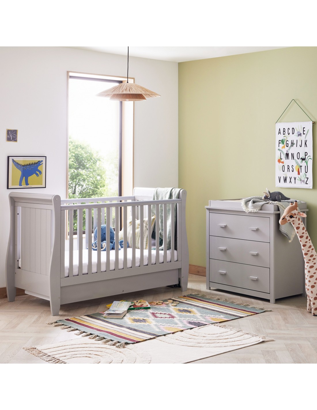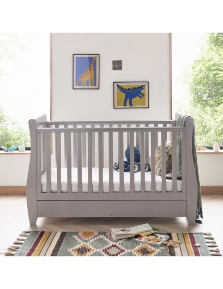 The sleigh cot bed is a timeless and elegant piece of furniture that will grow with your child. Made from sturdy wood and finished in a classic hue, it features a sleigh design with curved edges and slatted sides. The cot bed has a 3-position adjustable base, allowing you to lower it as your baby grows. The cot bed also comes with teething rails to protect your baby’s gums and teeth, and a handy storage drawer underneath to keep all your baby essentials close at hand. It can be converted into a toddler bed when your child is ready to make the transition from a cot.