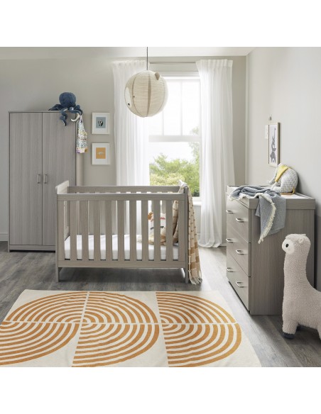 The Caro nursery collection is the ideal starting point for your nursery decor thanks to its timeless style and woodgrain finish. A stylish mini cotbed and versatile dresser are included in the Caro 2-piece nursery set.