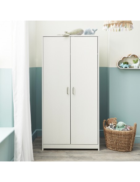 This cot will easily last through the first five years of your child’s life thanks to its three height settings and ability to be transformed into a toddler bed. The dresser’s changing top is detachable, transforming it from a practical baby changing unit into a chic dresser for displaying your child’s treasured possessions. Finally, the double wardrobe is spacious enough to house your little one’s clothing with a shelf and the choice of either one or two rails.