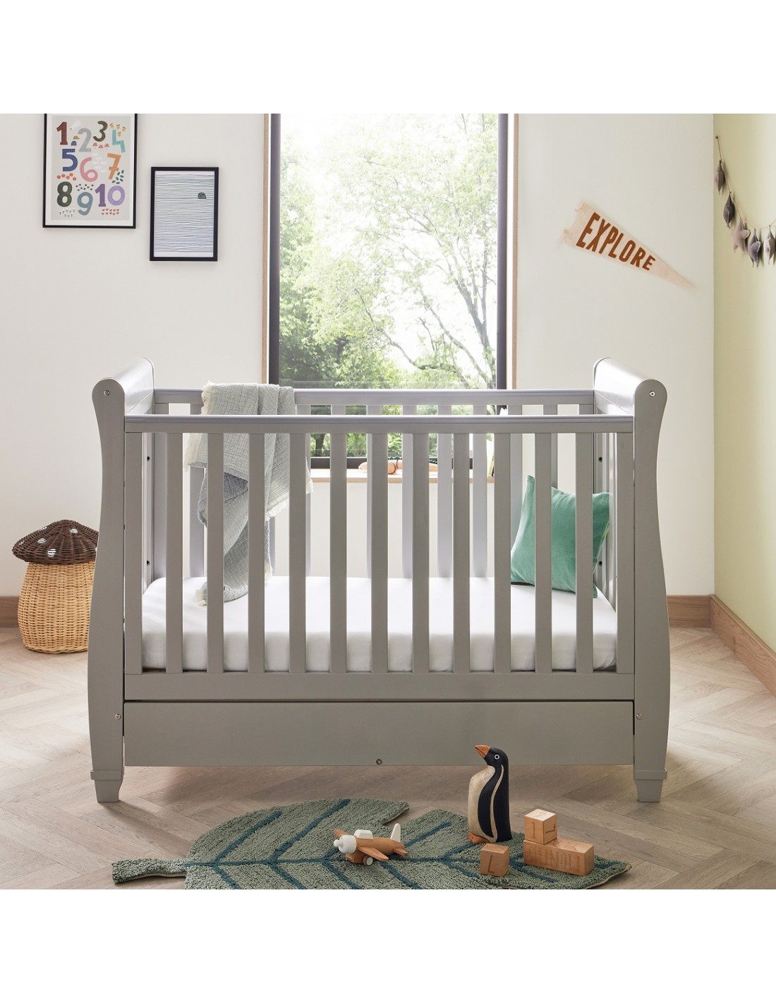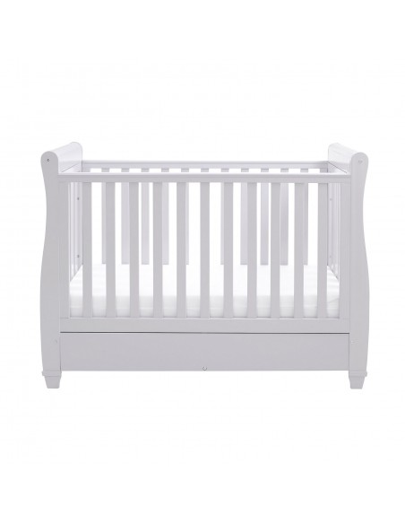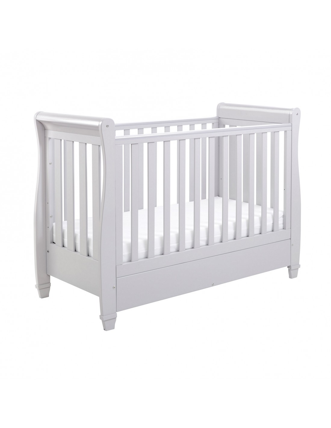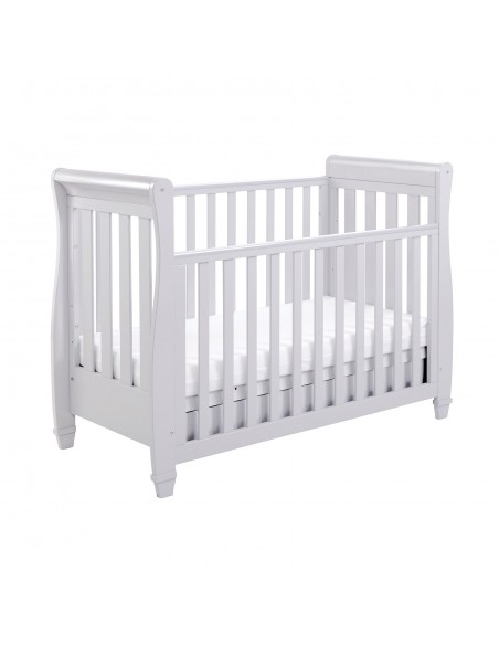 The sleek and stylish sleigh cot bed will transport you and your baby to a world of cosy dreams and peaceful slumber. With its smooth curves and elegant design, this cot bed is more than just a place to sleep; it’s a sanctuary for your little one. Crafted from high-quality materials, this cot bed is built to last and ensure your baby’s safety and comfort for years to come. With three mattress positions, a functional drop-side plus the ability to transform into a toddler bed, this piece of furniture will last you until your little one is ready to move into a full size single bed.