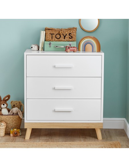 The accompanying chest changer is equally impressive, providing ample storage space for your child’s clothes, toys, and other essentials. The chest features a removable changer, allowing it to take on a more grown-up appearance once baby gets a little older. There are three full-sized drawers, giving you plenty of space to store all your little one’s clothes, nappies and essentials.