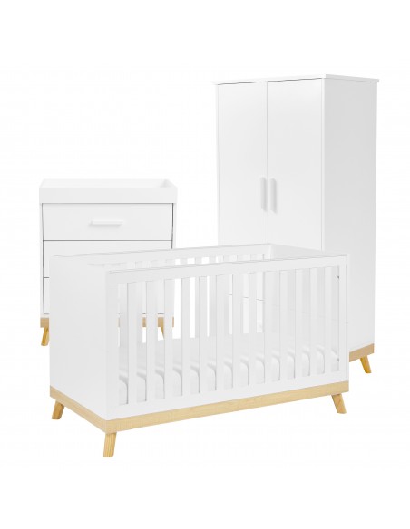 Introducing the stylish and versatile cot bed, chest changer, and wardrobe set, perfect for creating a cozy and functional nursery for your little one. Designed with both style and practicality in mind, this set offers plenty of storage space and a comfortable sleeping space for your baby, while also complementing any décor scheme.