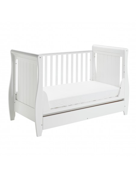 The sleigh cot bed is a timeless and elegant piece of furniture that will grow with your child. Made from sturdy wood and finished in a classic hue, it features a sleigh design with curved edges and slatted sides. The cot bed has a 3-position adjustable base, allowing you to lower it as your baby grows. The cot bed also comes with teething rails to protect your baby’s gums and teeth, and a handy storage drawer underneath to keep all your baby essentials close at hand. It can be converted into a toddler bed when your child is ready to make the transition from a cot.