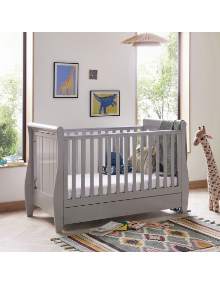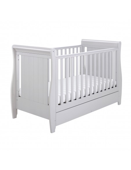 The sleigh cot bed is a timeless and elegant piece of furniture that will grow with your child. Made from sturdy wood and finished in a classic hue, it features a sleigh design with curved edges and slatted sides. The cot bed has a 3-position adjustable base, allowing you to lower it as your baby grows. The cot bed also comes with teething rails to protect your baby’s gums and teeth, and a handy storage drawer underneath to keep all your baby essentials close at hand. It can be converted into a toddler bed when your child is ready to make the transition from a cot.