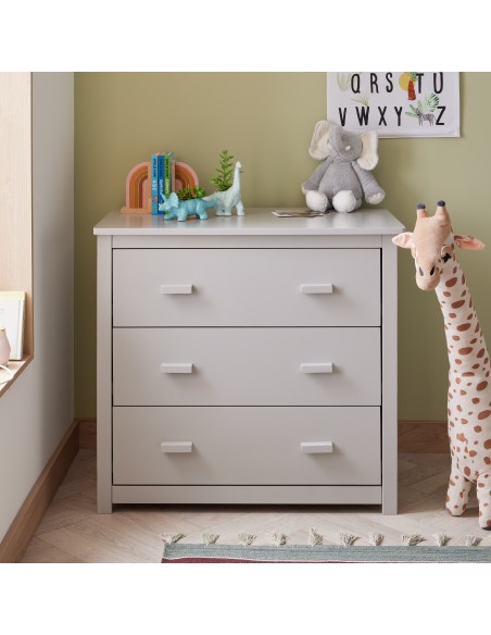 The chest changer is a practical and functional addition to your nursery. Also made from durable wood and finished in white, it features three deep drawers with ample storage space for your baby’s clothes, nappies, and other essentials. The top of the chest doubles as a changing table with a raised edge to keep your baby safe and secure during nappy changes. The chest changer also features an anti-tip safety mechanism for added peace of mind.