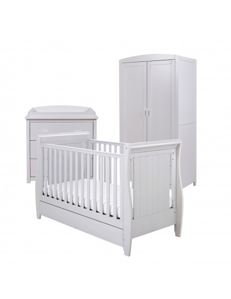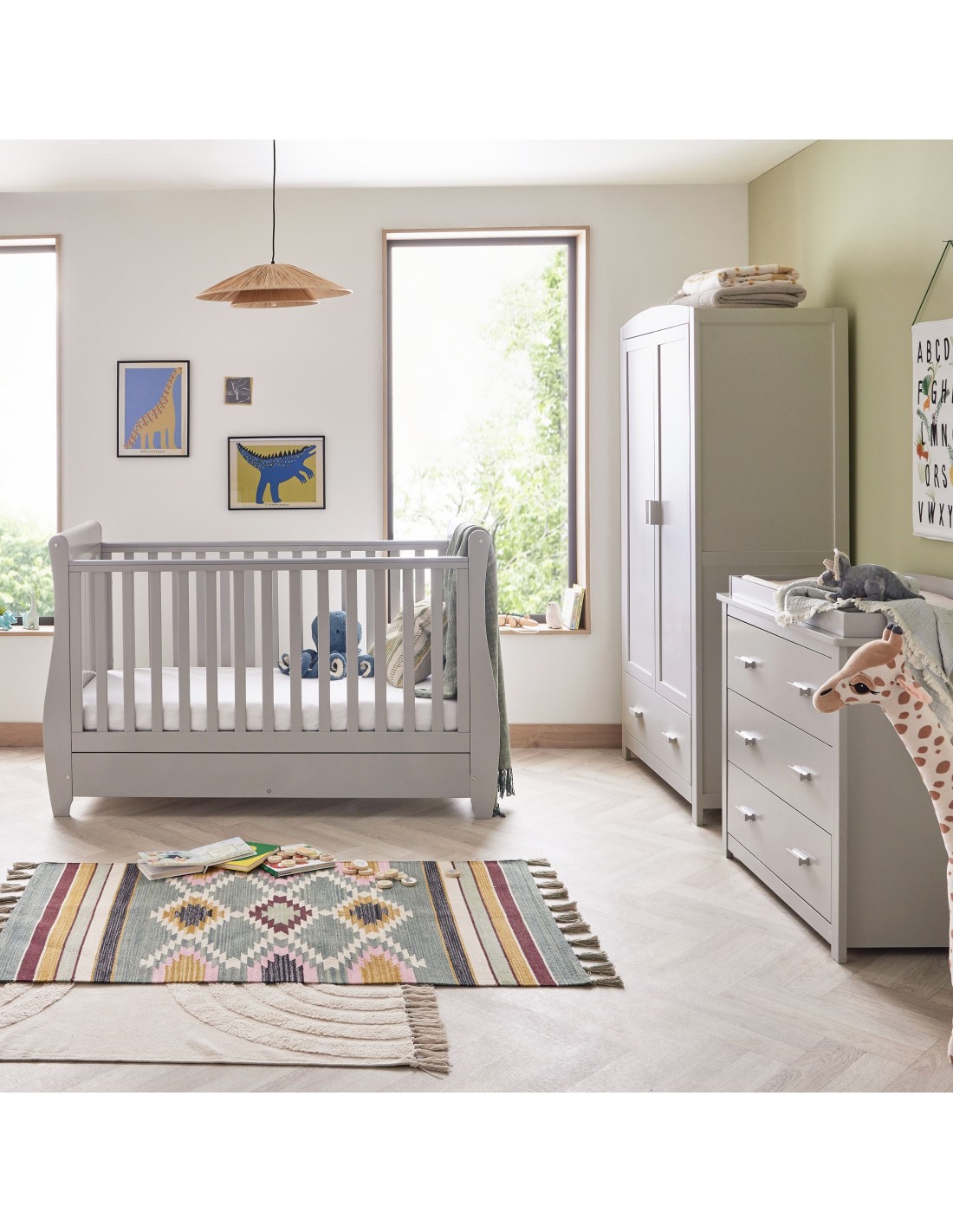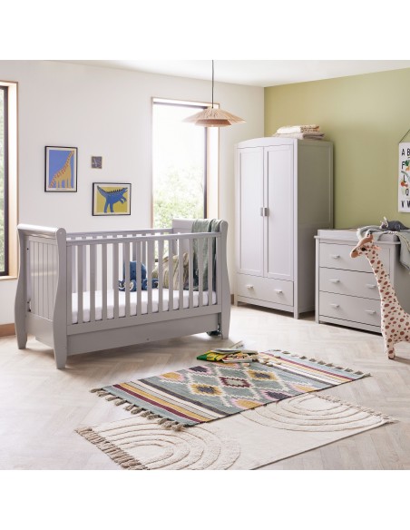 Introducing the beautiful Babymore Stella three-piece room set, which includes a stunning sleigh cot bed. Everything you need to design a stylish and comfortable nursery for your child is included in this lovely set.