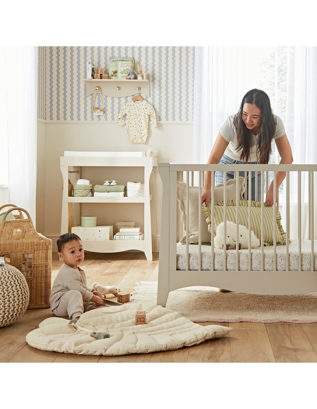 The Clara mini 2 piece nursery furniture set is an ideal solution if you’re looking for space saving nursery furniture that’s similar to the best selling Clara range. Complete with a mini cot bed and open changer, this set adds style and functionality fit for any traditional nursery design from the neutral cashmere colour.