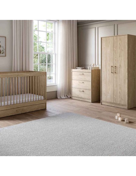 Transform your baby's nursery into an elegant and sophisticated space with the Geneva 3-piece furniture set. This complete collection includes everything needed for your child's first bedroom – a convertible cot to toddler bed with under-bed storage – perfect for smaller spaces and box rooms, a changing dresser, and a spacious wardrobe. Crafted for durability and longevity, Geneva nursery furniture features a natural oak finish with textured detailing and coordinating handles, creating a soothing, Scandi-inspired look that you’ll love for years to come.