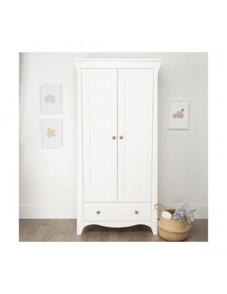 The Clara 2 door double wardrobe is designed to successfully organise your nursery, with 2 removable hanging rails to convert into a full-size wardrobe, a deep storage drawer and handy shelving space, it's classic styling to transform a modern nursery.