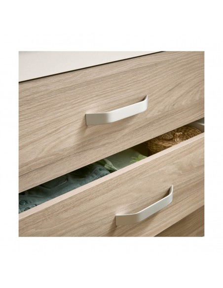 The Ada Dresser Changer combines sleek, contemporary lines and soft ash tones to create a modern classic. Its drawers feature brushed metal handles that provide the perfect modern touch. This nursery dresser would look at home in both a contemporary and more traditional nursery.