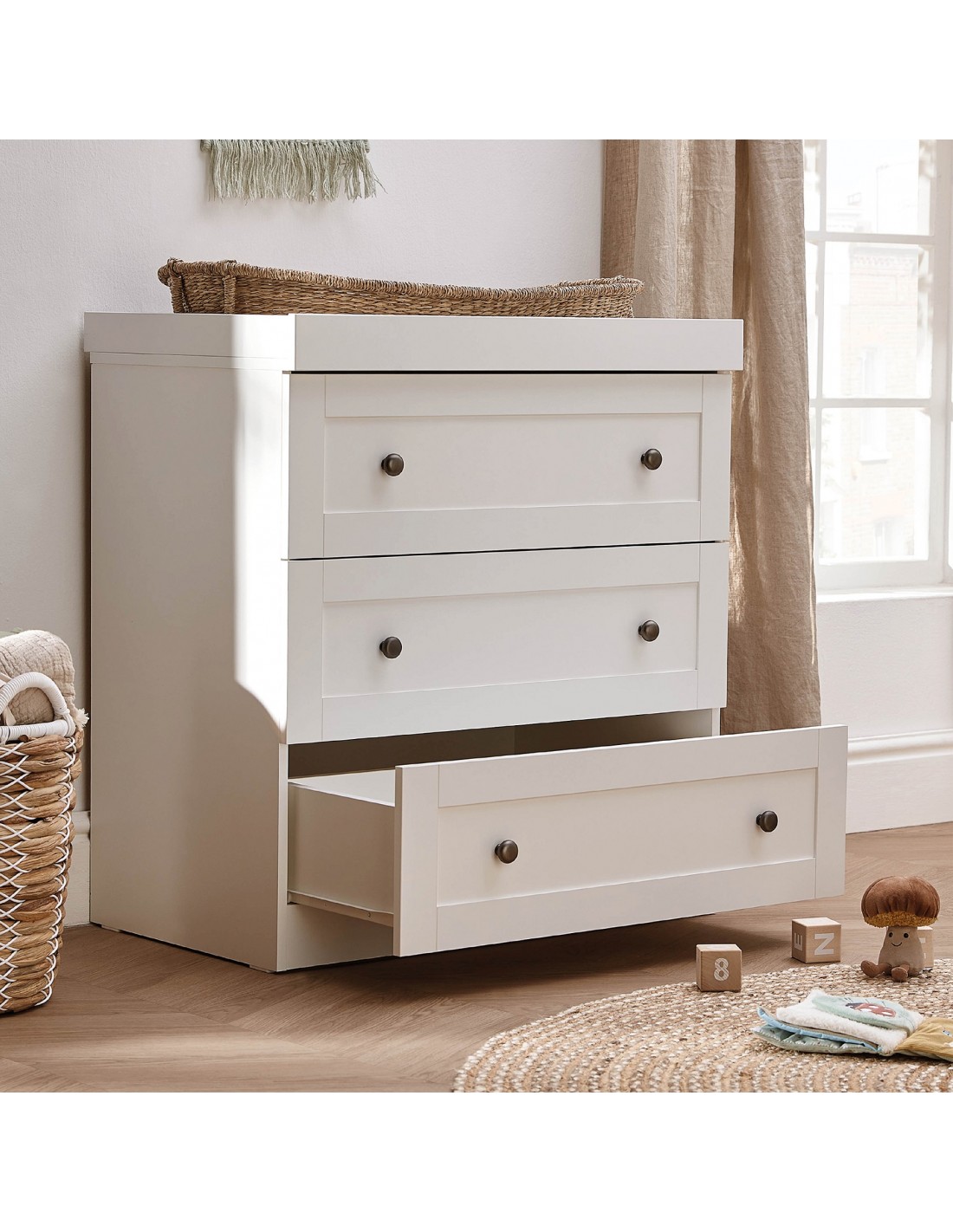 A stylish addition that fits seamlessly into any home, the Silver Cross Bromley nursery furniture collection is timeless and elegant. Providing the perfect canvas for creating your little one’s dream nursery, Bromley features a soft white finish with contrasting cast pewter handles.