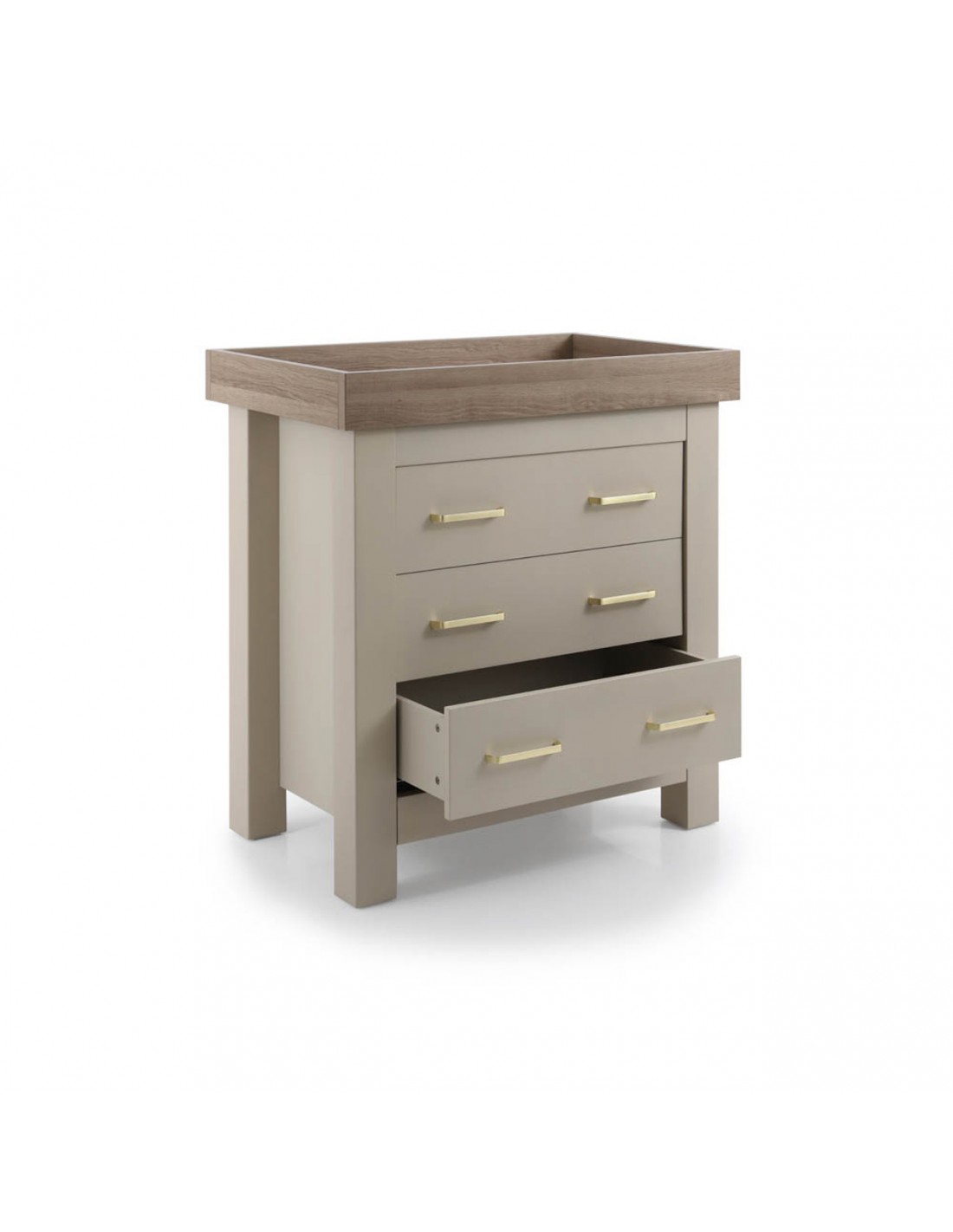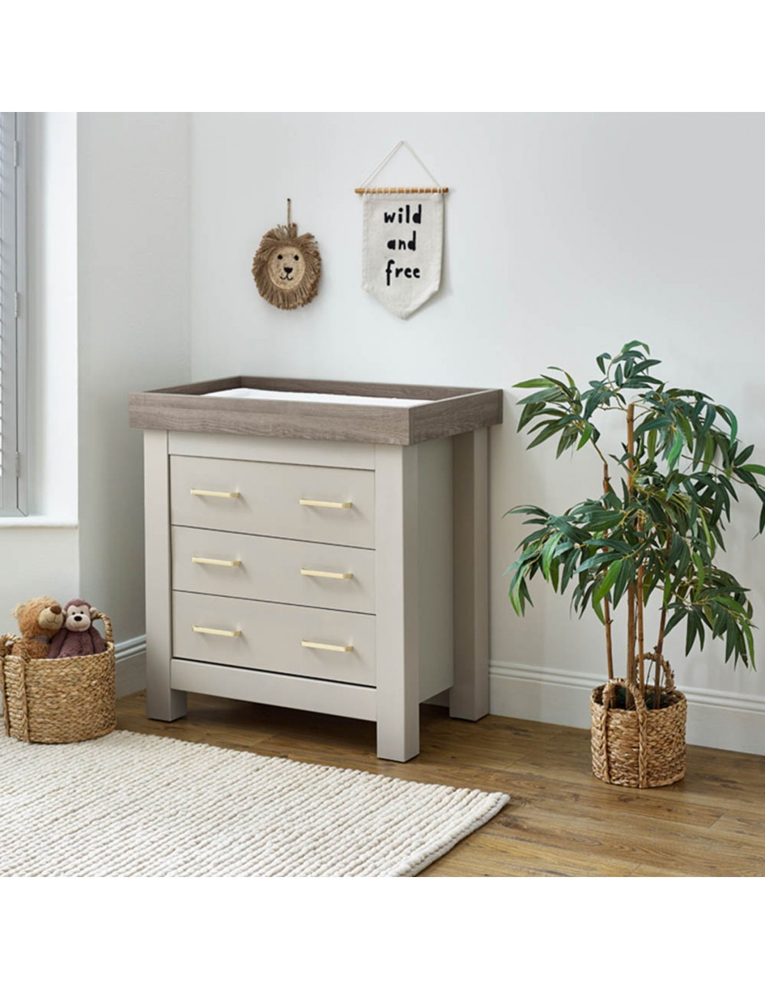 Versatile Dresser with Changer Top — A practical dresser featuring a detachable changing lid (with hidden fixings) and three spacious drawers on smooth gliding rails.