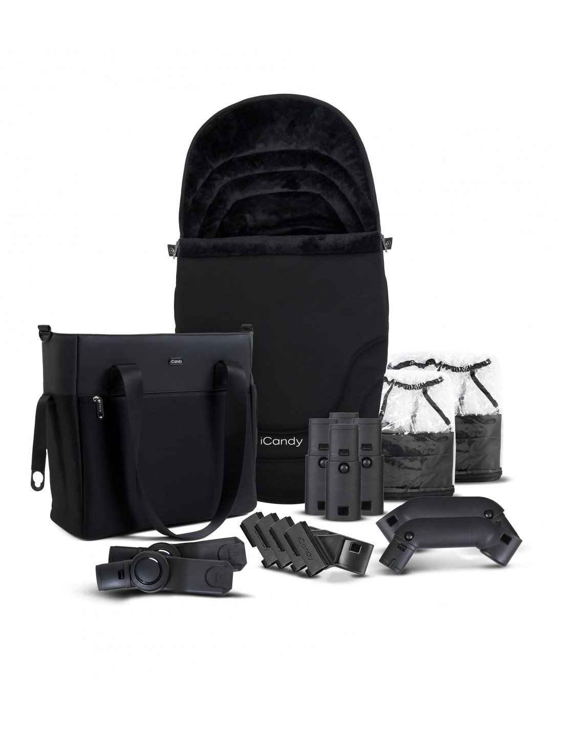 Chassis, Carrycot/Seat Unit Frame x2, Carrycot Fabric, Seat Unit Fabric, Carrycot Mattress, Carrycot Baseboard, Canopy x2, Bumper Bar x2, Upper/Main Car Seat Adaptors, Elevator Adaptors, Risers, Converter Adaptors, Footmuff & Liner, Changing Bag, Raincover x2.