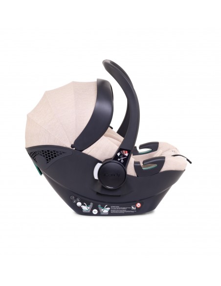 Introducing the iCandy Cocoon Child Restraint System. It’s suitable for both seat belt and ISOFIX installation, providing convenience and peace of mind for parents. Designed for babies from birth to 13kg, the iCandy Cocoon is i-Size compliant and features a removable insert for growing infants. With its unique handle design, rest assured that the seat securely locks onto your pushchair’s car seat adaptors, eliminating any accidental button presses. Using trusted UPF 50+ rated fabrics and multi-position canopy for extra protection on sunny days, your little one stays safe and comfortable.