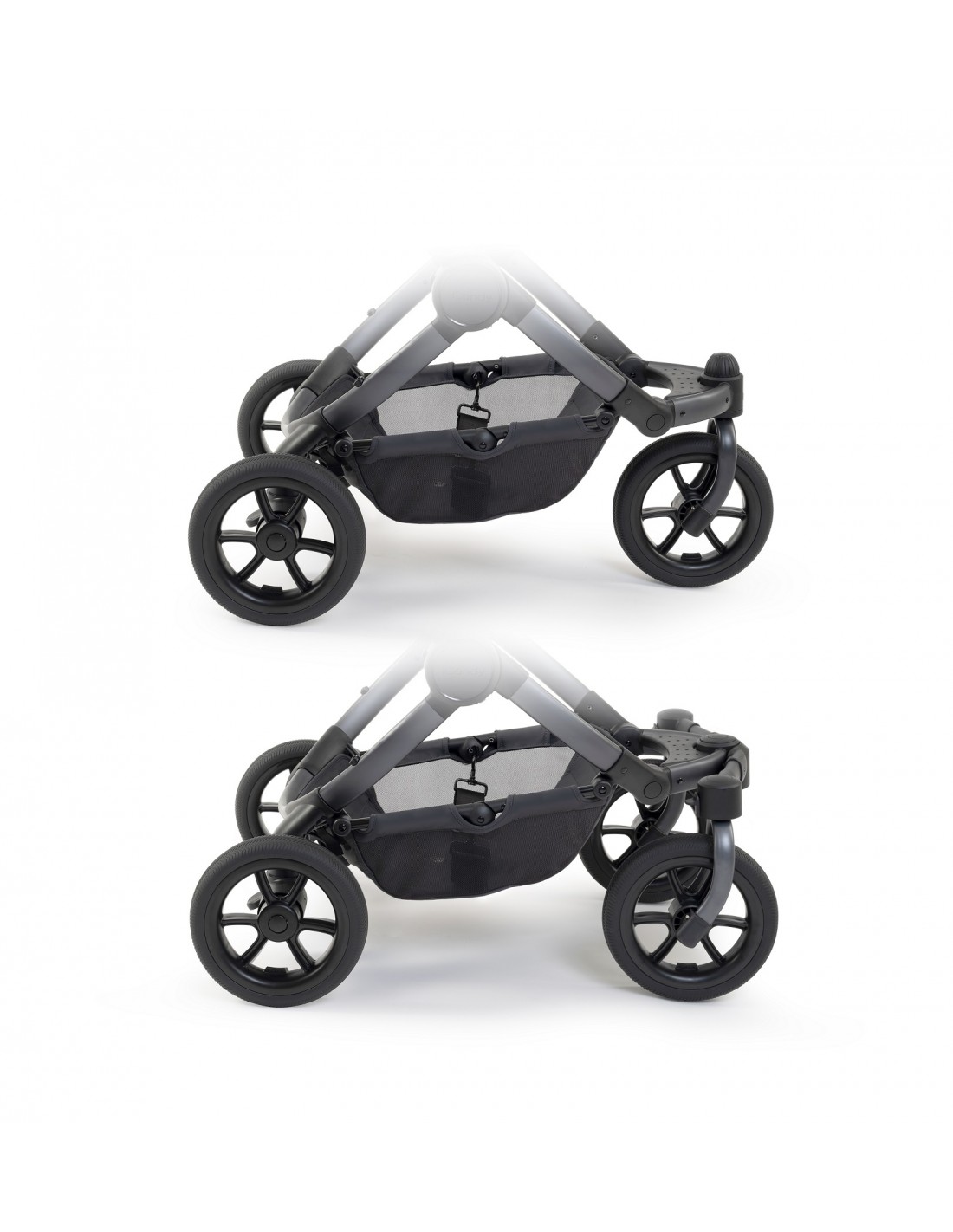 - Effortlessly converts from a single to double or twin pushchair when in four-wheel mode