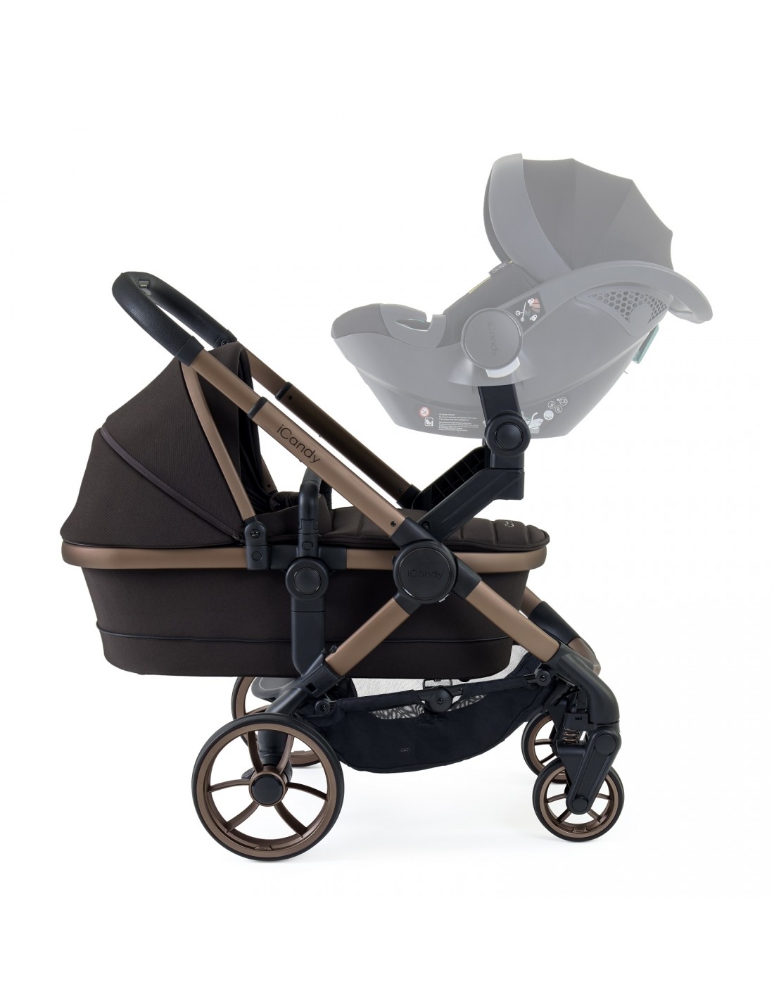 As a complete travel system, the Peach takes baby from birth to 25kg. Plus, with included car seat adaptors a compatible infant carrier car seat can be attached to the pushchair frame.