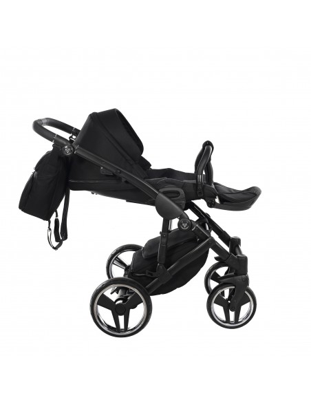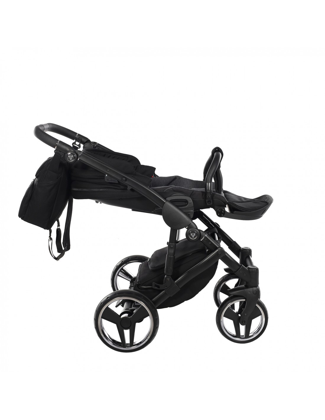 The aluminium chassis comes with superb suspension, large shopping basket and quick release wheels. Engineered with 6 shock breakers which make the pram extra comfortable and smooth. The reliable front suspension release system absorbs shocks from the ground and frontal blows, for example when hitting the curb. The chassis is engineered with a separate adjustable shock absorber ensuring agile steering on all terrains.