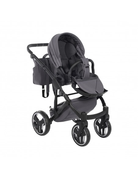 The aluminium chassis comes with superb suspension, large shopping basket and quick release wheels. Engineered with 6 shock breakers which make the pram extra comfortable and smooth. The reliable front suspension release system absorbs shocks from the ground and frontal blows, for example when hitting the curb. The chassis is engineered with a separate adjustable shock absorber ensuring agile steering on all terrains.