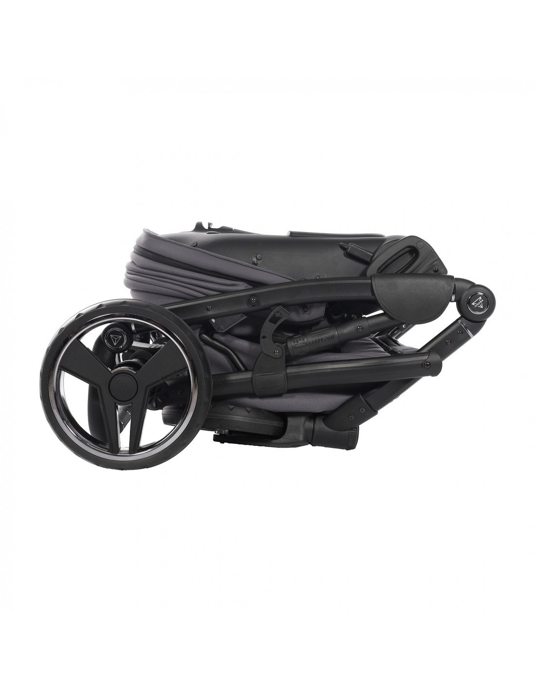 The height adjustable handle bar can be adjusted 180° to suit all members of the family and has an eco-leather finish for utmost comfort. The ingenious folding mechanism allows for a compact collapse, the chassis can fold together with the pushchair seat unit attached protecting the upholstery and ensuring hygiene.