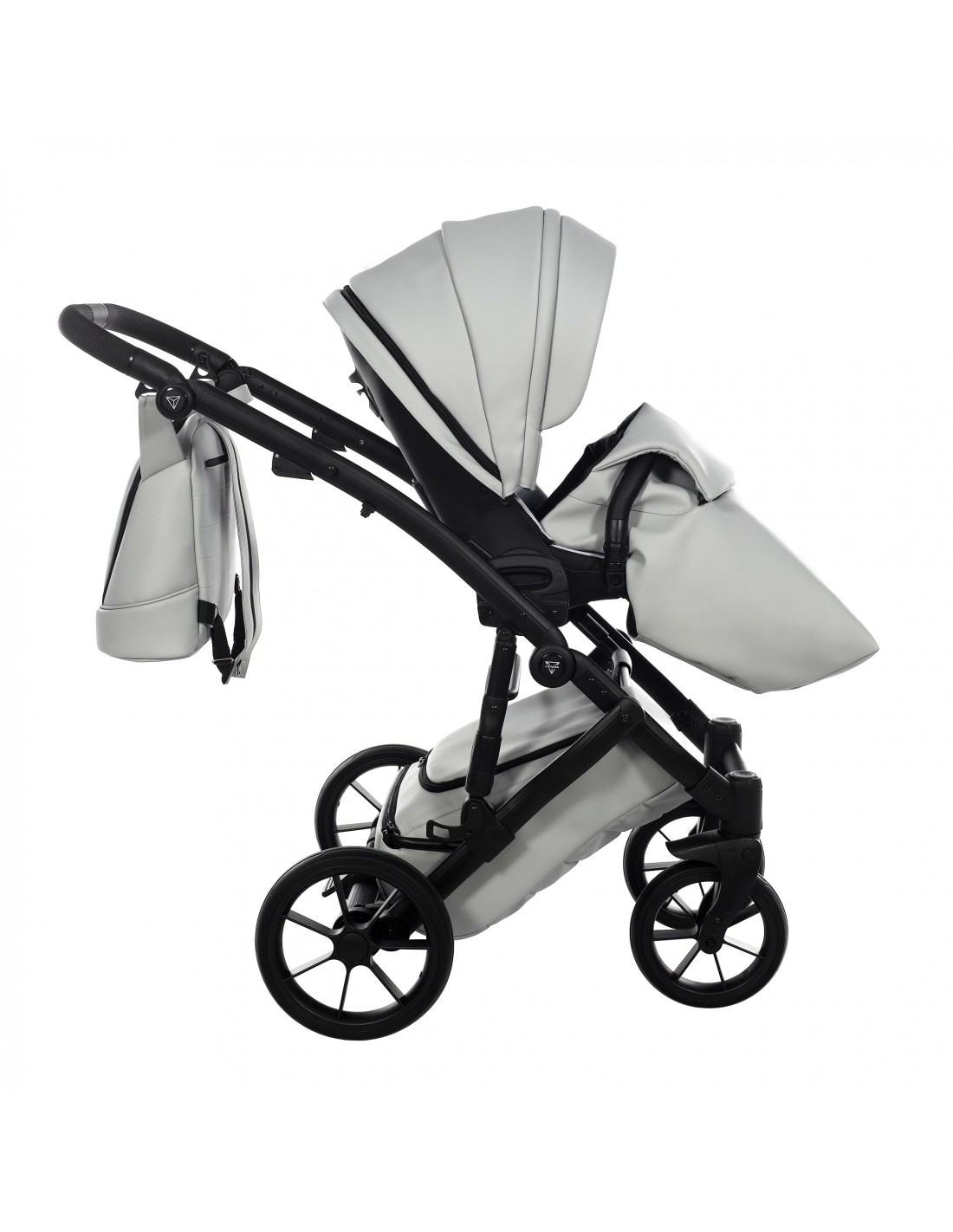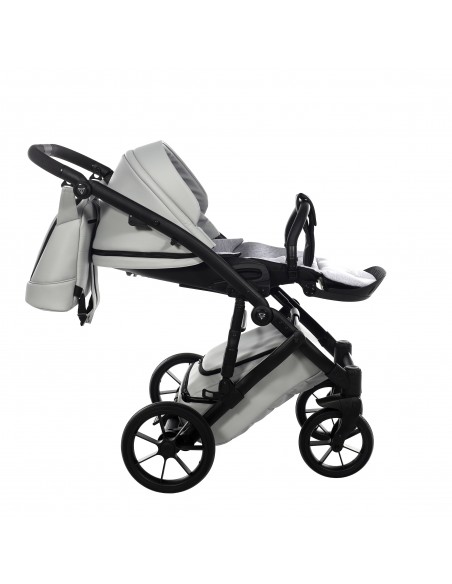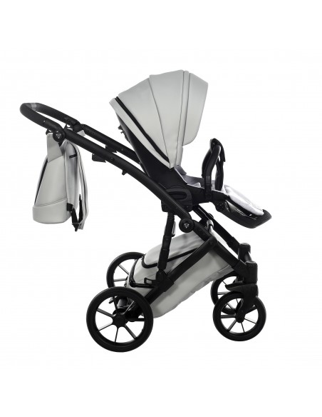The height adjustable handle bar can be adjusted 180° to suit all members of the family and has an eco-leather finish for utmost comfort. The ingenious folding mechanism allows for a compact collapse, the chassis can fold together with the pushchair seat unit attached protecting the upholstery and ensuring hygiene.