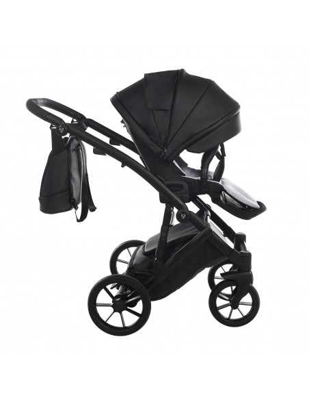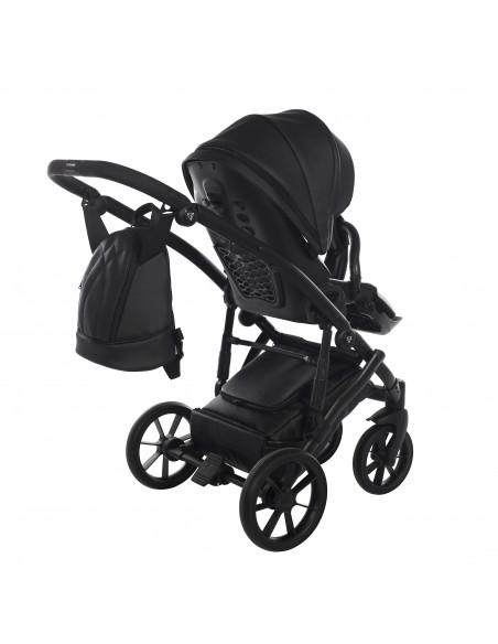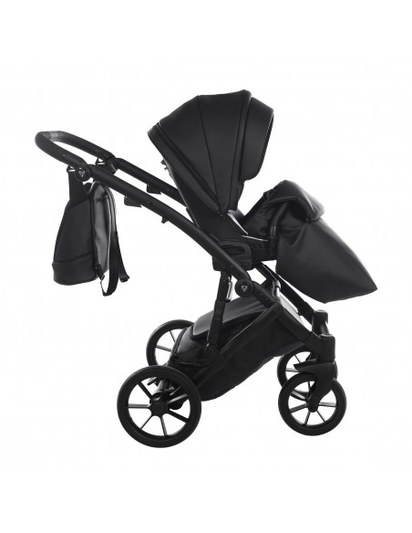 The height adjustable handle bar can be adjusted 180° to suit all members of the family and has an eco-leather finish for utmost comfort. The ingenious folding mechanism allows for a compact collapse, the chassis can fold together with the pushchair seat unit attached protecting the upholstery and ensuring hygiene.