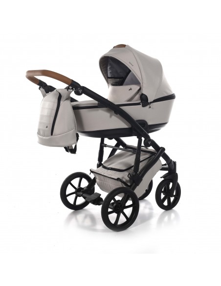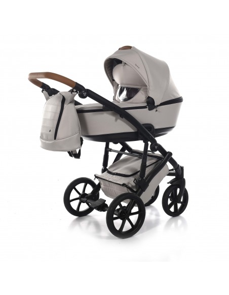 The aluminium chassis comes with superb suspension, large shopping basket and quick release wheels. Engineered with 6 shock breakers which make the pram extra comfortable and smooth. The reliable front suspension release system absorbs shocks from the ground and frontal blows, for example when hitting the curb. The chassis is engineered with a separate adjustable shock absorber ensuring agile steering on all terrains.