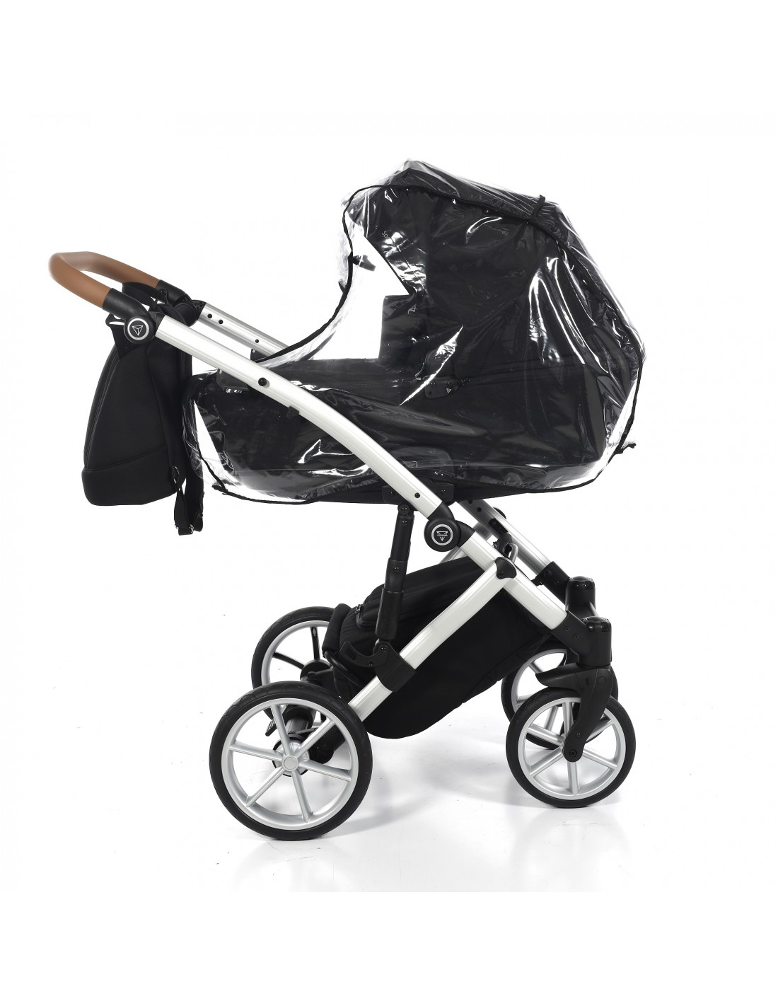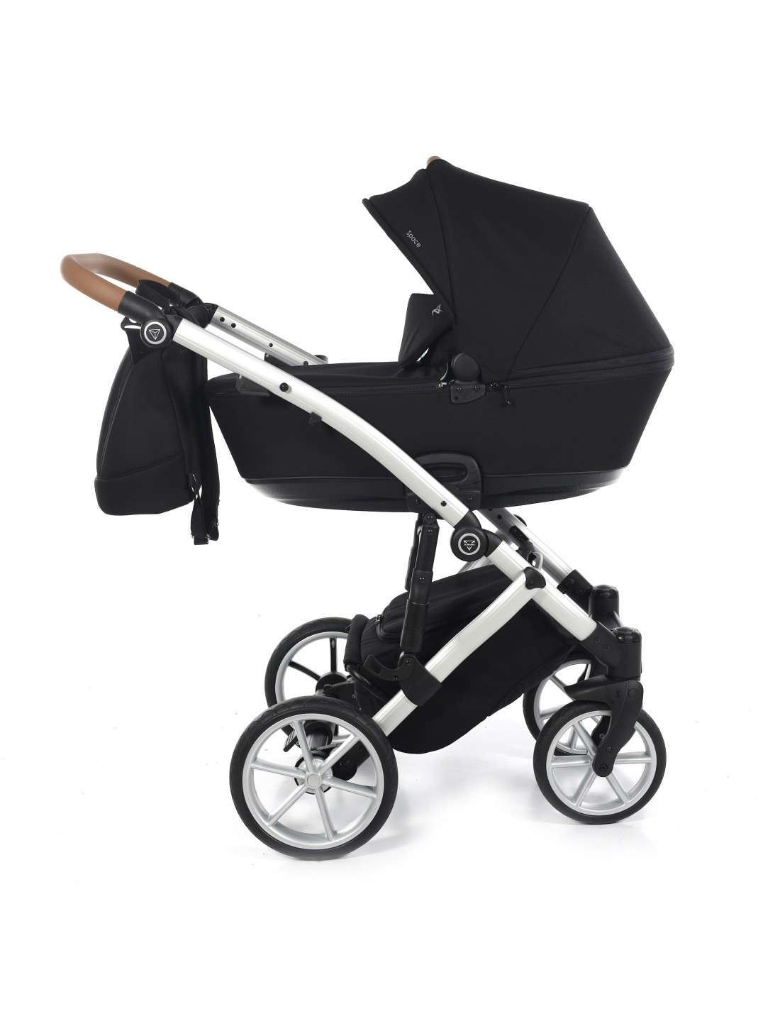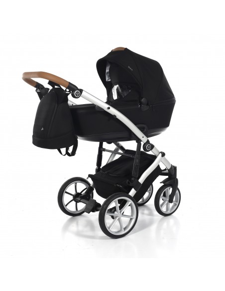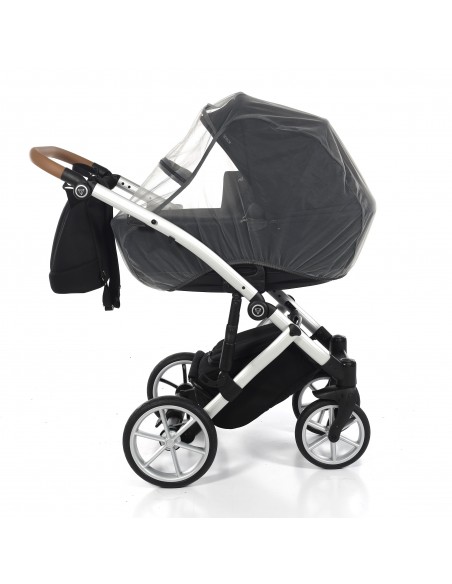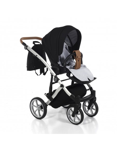 The aluminium chassis comes with superb suspension, large shopping basket and quick release wheels. Engineered with 6 shock breakers which make the pram extra comfortable and smooth. The reliable front suspension release system absorbs shocks from the ground and frontal blows, for example when hitting the curb. The chassis is engineered with a separate adjustable shock absorber ensuring agile steering on all terrains.