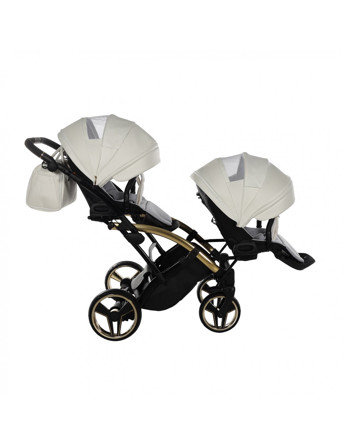 2in1 Package - Chassis, x2 carrycot, x2 mattress, x2 reversible seat unit, x2 apron/leg cover, x2 changing bag, x2 changing mat, x2 raincover, x2 mosquito net, x2 cup holder