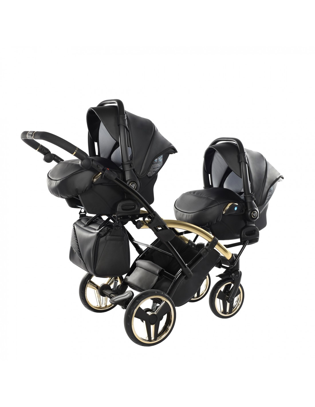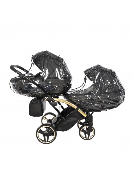 2in1 Package - Chassis, x2 carrycot, x2 mattress, x2 reversible seat unit, x2 apron/leg cover, x2 changing bag, x2 changing mat, x2 raincover, x2 mosquito net, x2 cup holder