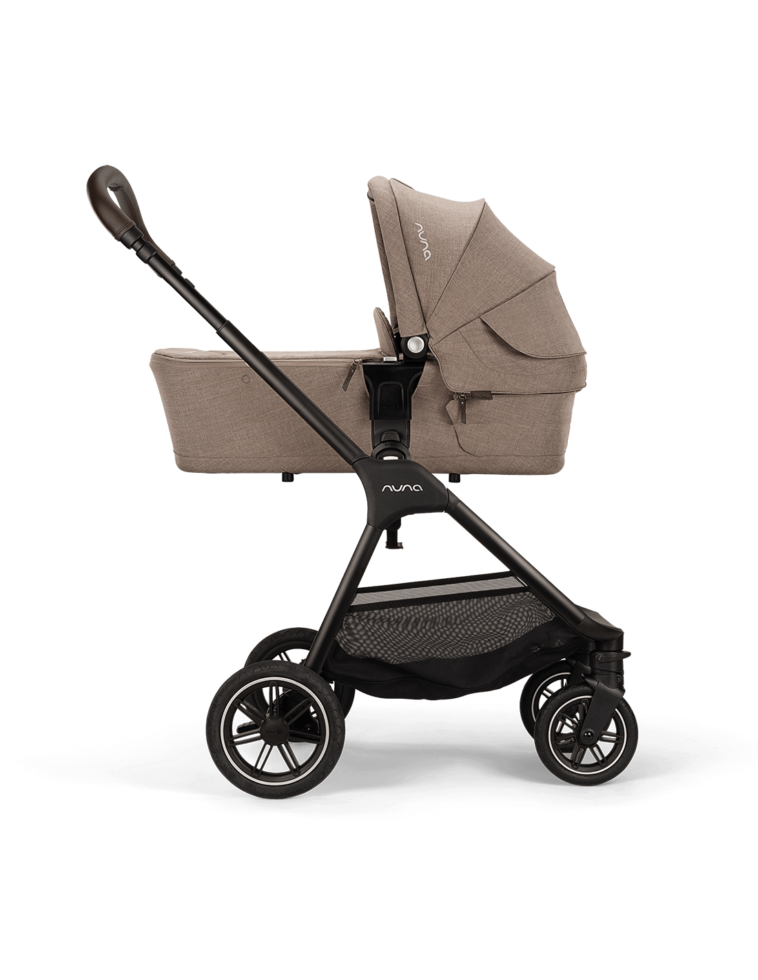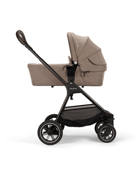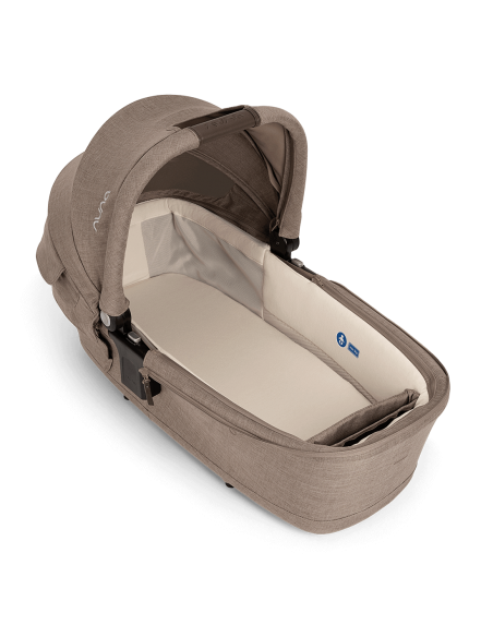 The UPF 50+ canopy, Nuna's iconic Dream drape™, and the included rain cover provide added protection from the elements and lovely, uninterrupted naps. Integrated memory release buttons and a hand-sewn leatherette carry handle make for a simple detach from the pushchair frame–because new parents deserve snuggles not struggles.
