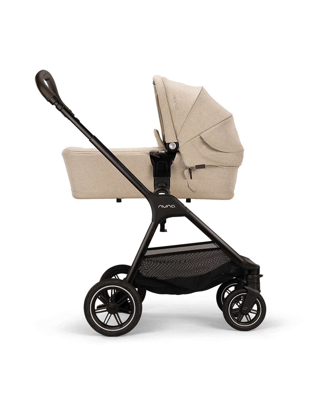 The UPF 50+ canopy, Nuna's iconic Dream drape™, and the included rain cover provide added protection from the elements and lovely, uninterrupted naps. Integrated memory release buttons and a hand-sewn leatherette carry handle make for a simple detach from the pushchair frame–because new parents deserve snuggles not struggles.