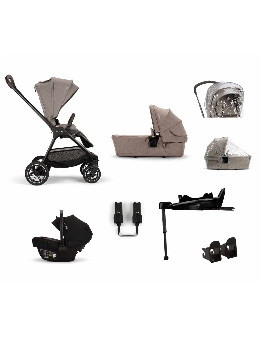 Includes; chassis, seat unit, seat liner, shopping basket, xl sun canopy, LYLT carrycot with mattress, carrycot raincover, carrycot dream drape, car seat adaptors, raincover & Pipa NEXT car seat & Nuna Base NEXT.