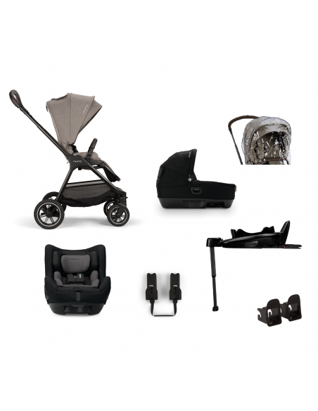 Includes; chassis, seat unit, seat liner, shopping basket, xl sun canopy, car seat adaptors, raincover, Cari Car Seat/Carrycot, Todl car seat & Nuna Base NEXT.