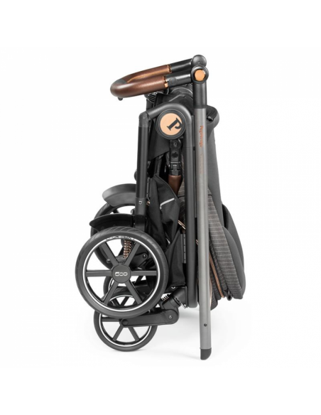 Steering agility is guaranteed, even with just one hand. The eco-leather handlebar ensures utmost comfort. Multiple handle adjustments for parents of different heights. The high position of the handle is very useful to save space when needed, for example in an elevator.