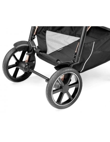 Steering agility is guaranteed, even with just one hand. The eco-leather handlebar ensures utmost comfort. Multiple handle adjustments for parents of different heights. The high position of the handle is very useful to save space when needed, for example in an elevator.