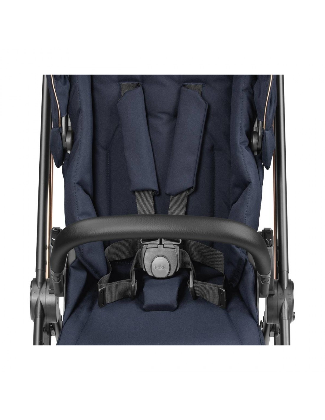 Comfort and functionality are guaranteed by a roomy seat, a 5-point harness and an eco-leather front bar that opens and closes with ease.