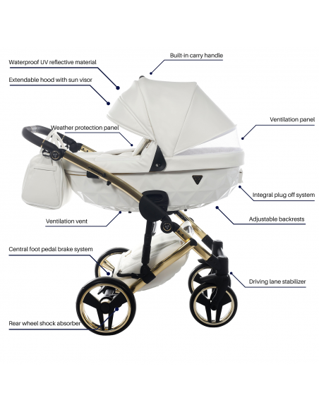 Junama has designed and manufactured exclusive prams in Europe for over 30 years. The Junama pram offers a completely new look in the world of prams. Inspired by the jewel that evokes the greatest emotion, the diamond, Junama designed the rare and beautiful diamond carrycot.