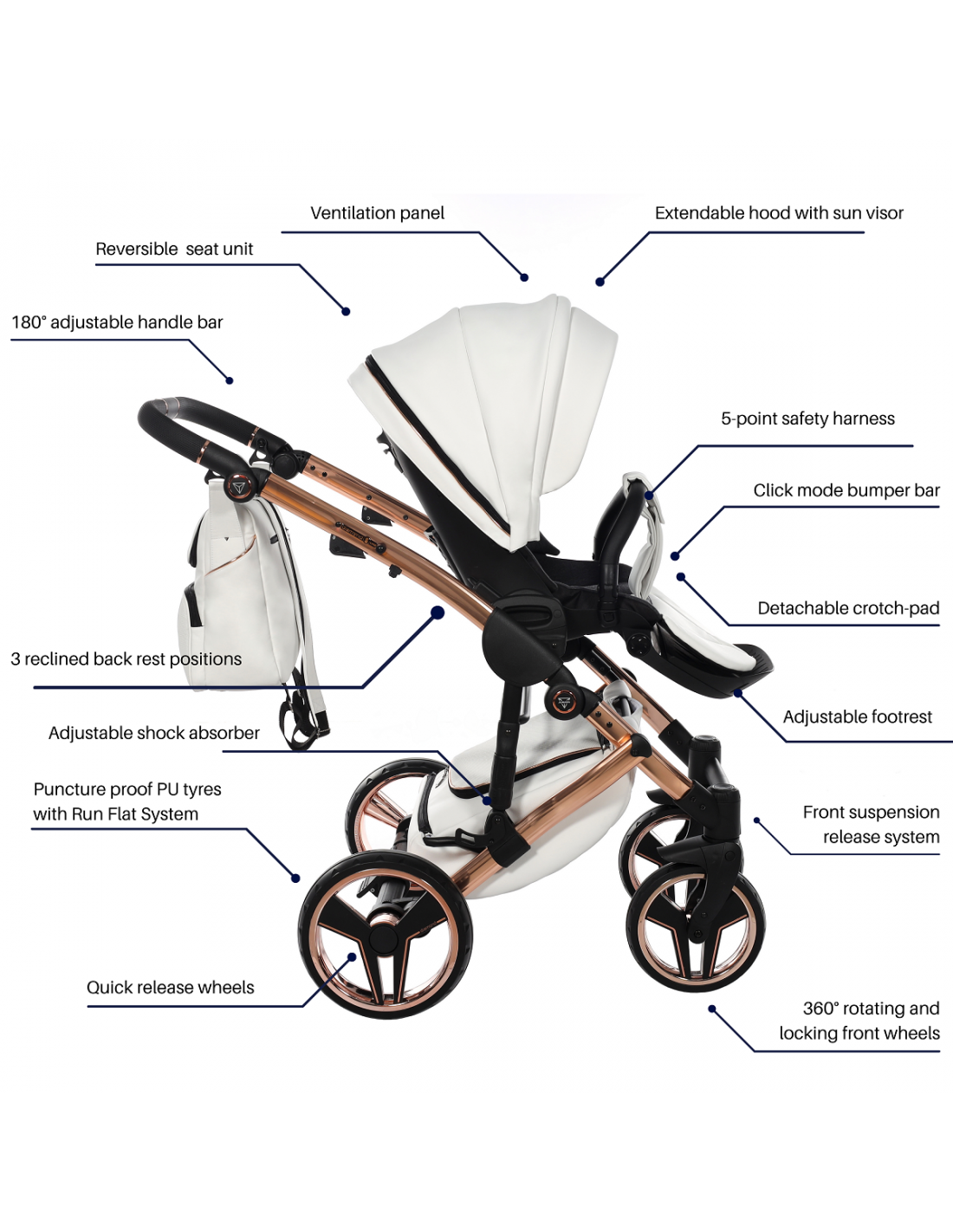 Junama has designed and manufactured exclusive prams in Europe for over 30 years. The Junama pram offers a completely new look in the world of prams. Inspired by the jewel that evokes the greatest emotion, the diamond, Junama designed the rare and beautiful diamond carrycot.