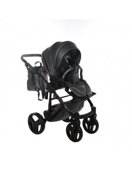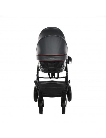 The height adjustable handle bar can be adjusted 180° to suit all members of the family and has an eco-leather finish for utmost comfort. The ingenious folding mechanism allows for a compact collapse, the chassis can fold together with the pushchair seat unit attached protecting the upholstery and ensuring hygiene.