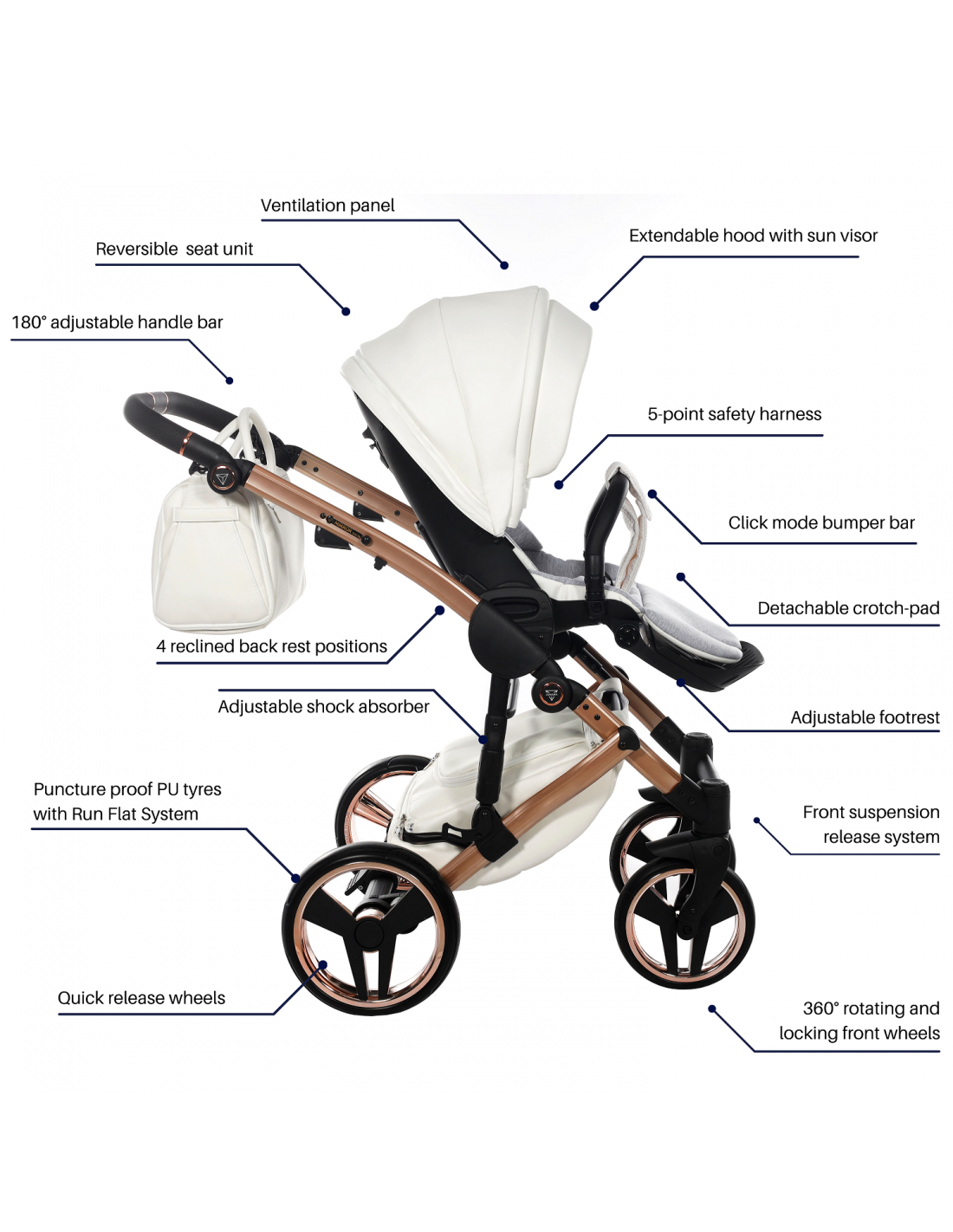 The Junama pram will certainly make a statement but doesn’t compromise on functionality and comfort. For years, Junama’s goal has been to design the safest and most comfortable yet stylish pram on the market. For this reason, Junama developed many innovative systems that have become a permanent part of our products. The Junama prams are well equipped with lots of practical features to help you travel with your little one(s) safely and easily.