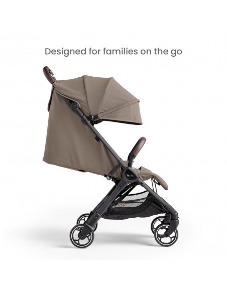Clic’s soft-cushioned leatherette bumper bar is compatible with the Silver Cross snack tray, while the UPF50+ hood, sun visor and ventilation panel with magnetic fastening keeps them cool on warmer strolls.