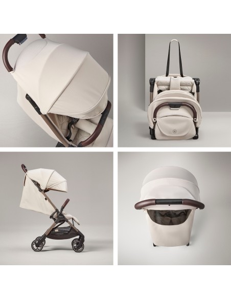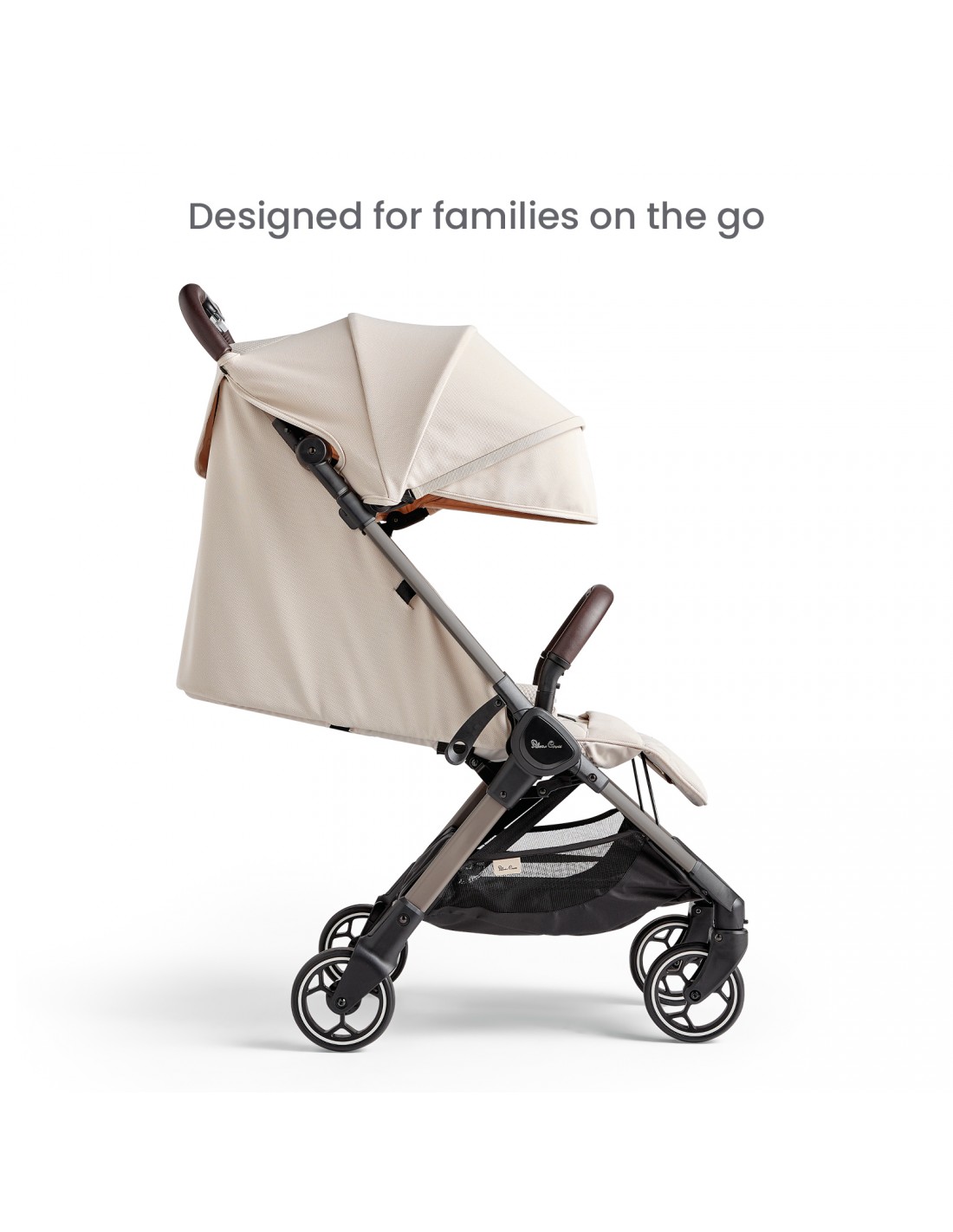 Clic’s soft-cushioned leatherette bumper bar is compatible with the Silver Cross snack tray, while the UPF50+ hood, sun visor and ventilation panel with magnetic fastening keeps them cool on warmer strolls.