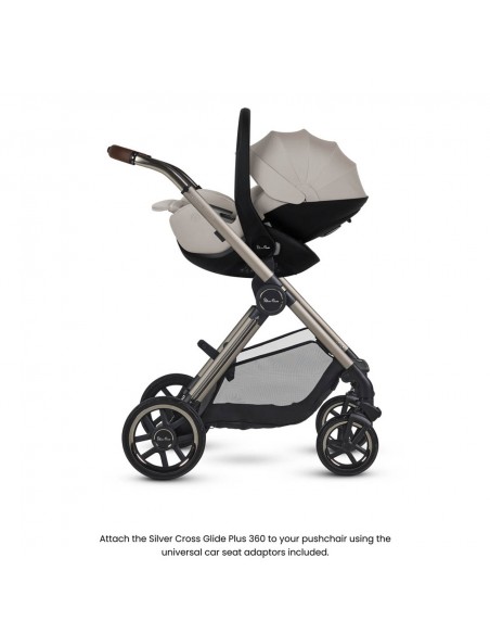 Create the ultimate newborn travel system by attaching Glide Plus 360 to your Silver Cross pram or stroller, perfect for quick trips without disturbing naptime.