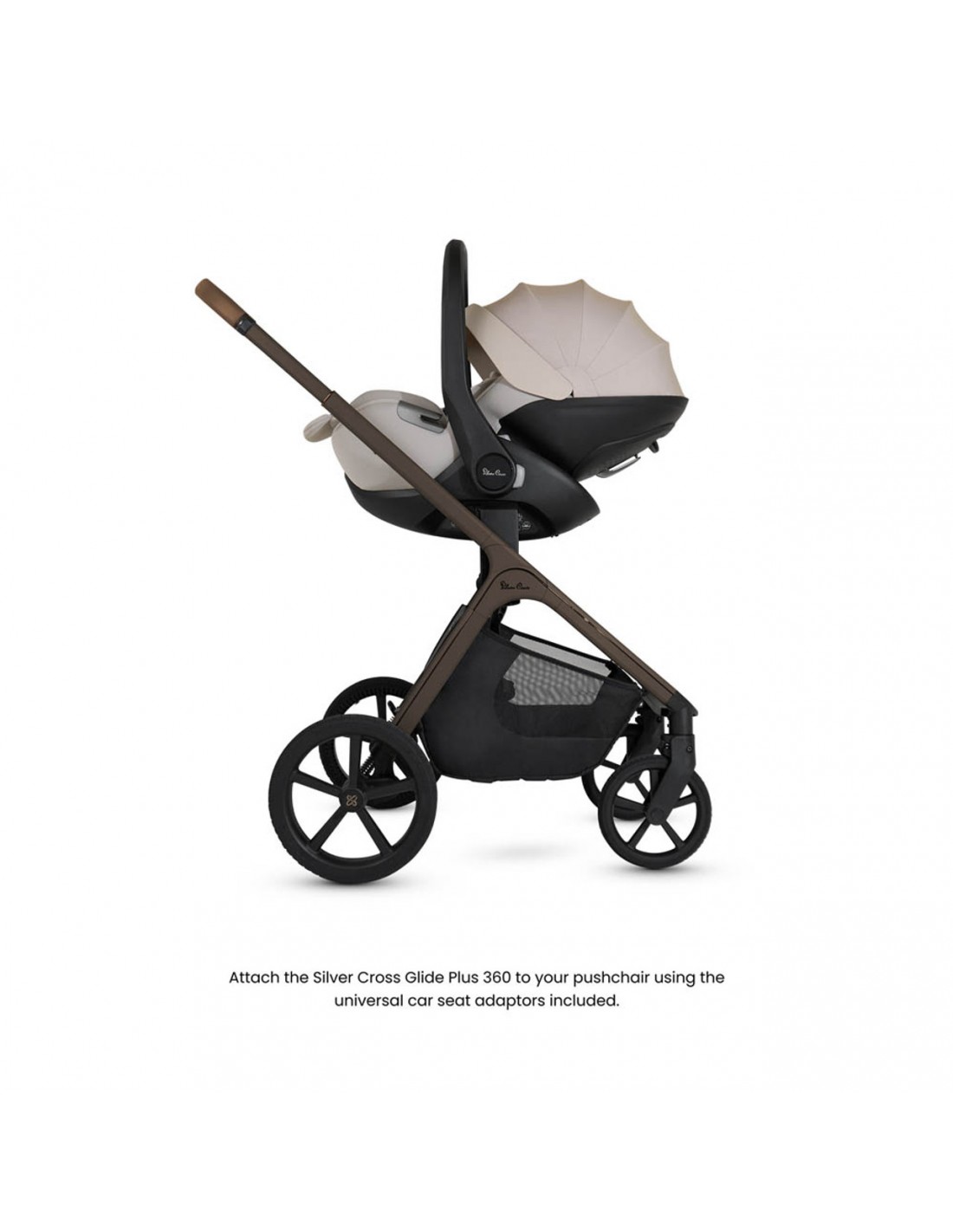 Create the ultimate newborn travel system by attaching Glide Plus 360 to your Silver Cross pram or stroller, perfect for quick trips without disturbing naptime.