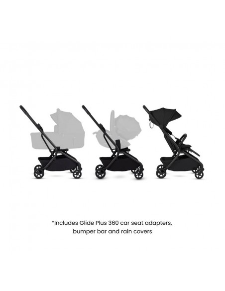 Includes; pushchair (complete with hood and seat liner), bumper bar, raincover and Glide Plus car seat adaptors.