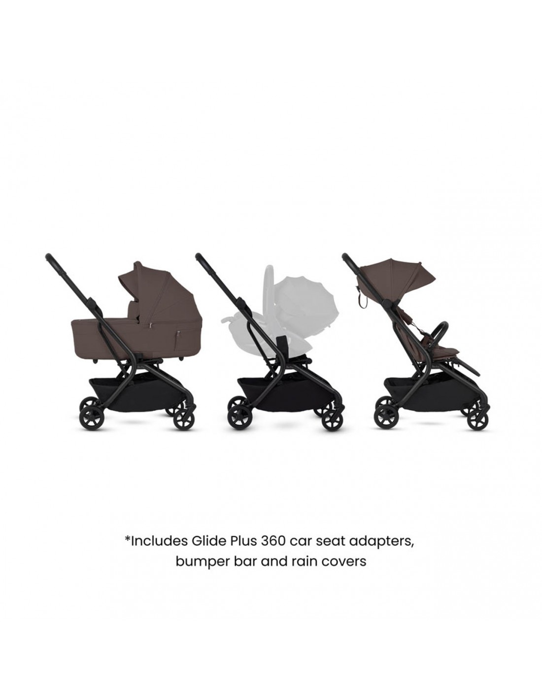 Transform Nia into a complete travel system by attaching the Glide Plus 360 car seat to the chassis (also compatible with most other brands with additional universal car seat adaptors)