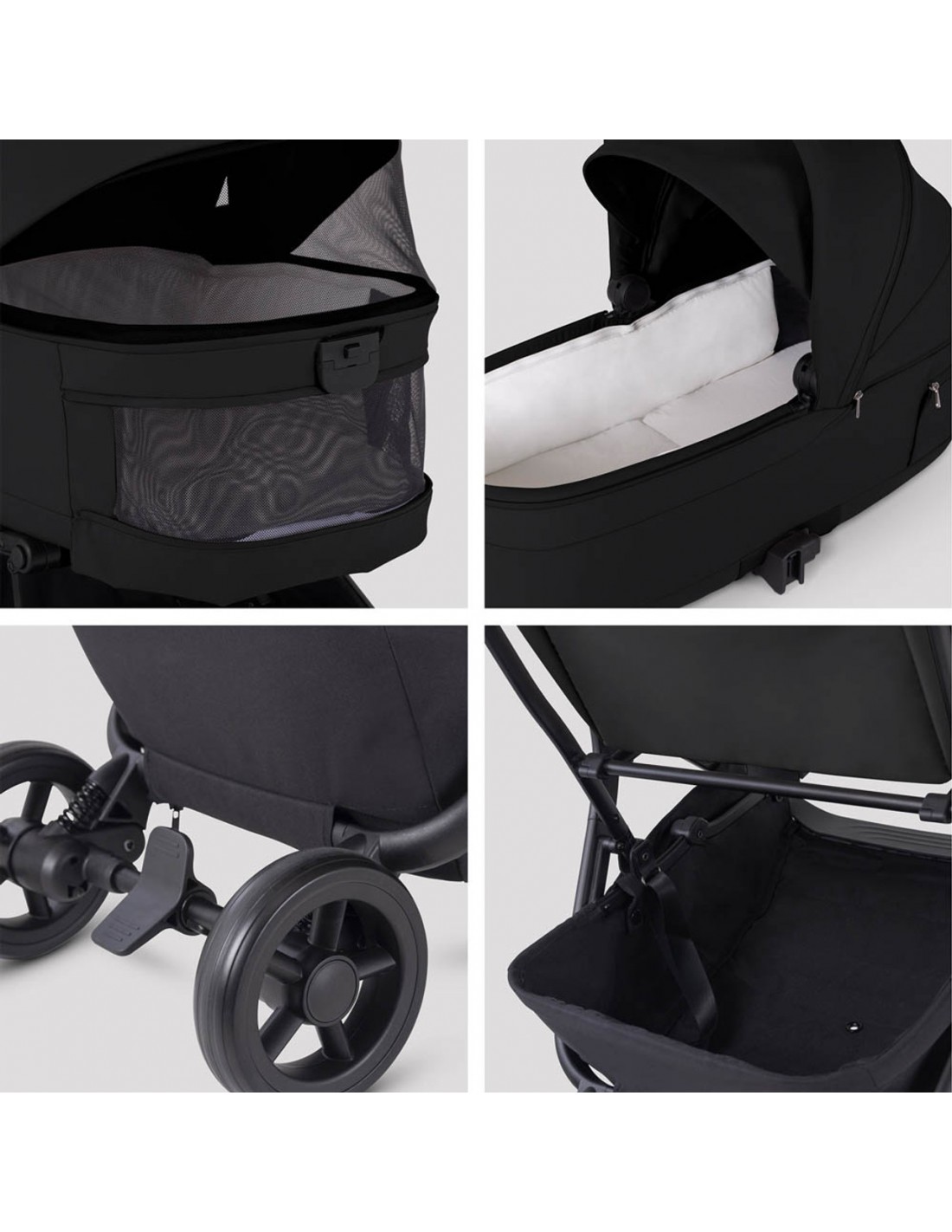 Nia's revolutionary carrycot folds together while still attached to the chassis - a total game changer for compact storage, city living, and life on the move.