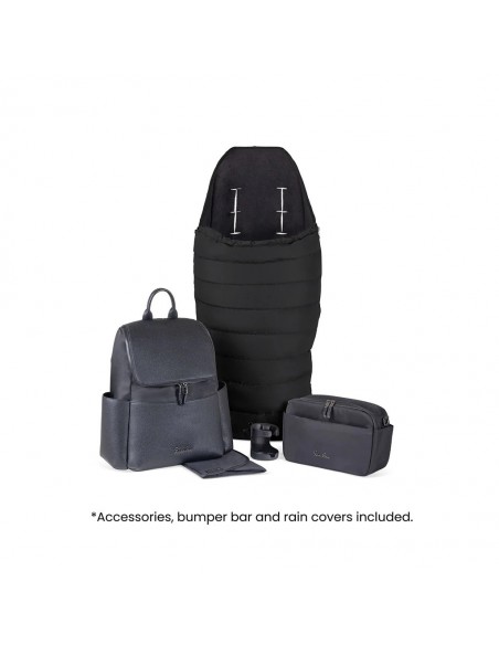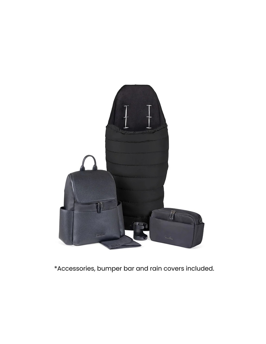 Silver Cross Nia Travel System with Accessories (12 Piece Bundle with Glide Plus 360 Car Seat) - Onyx