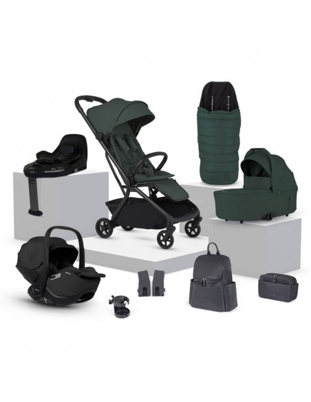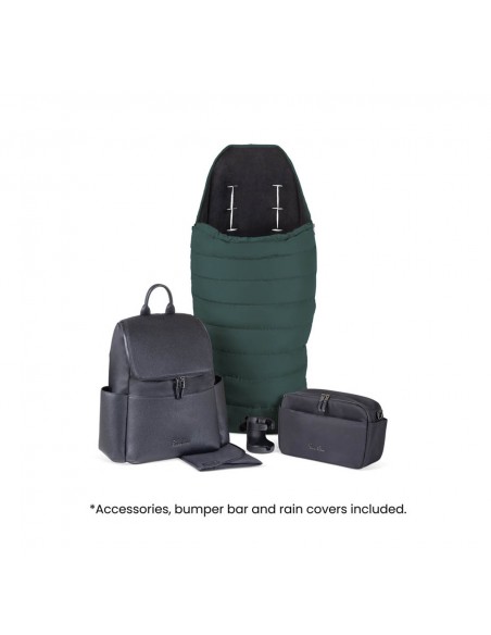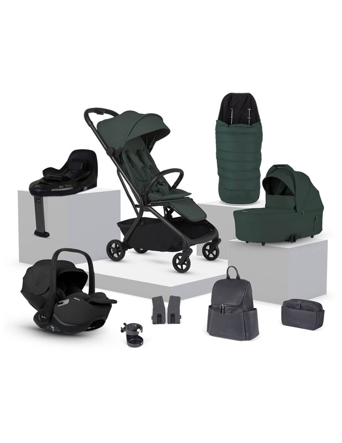 Silver Cross Nia Travel System with Accessories (12 Piece Bundle with Glide Plus 360 Car Seat) - Conifer